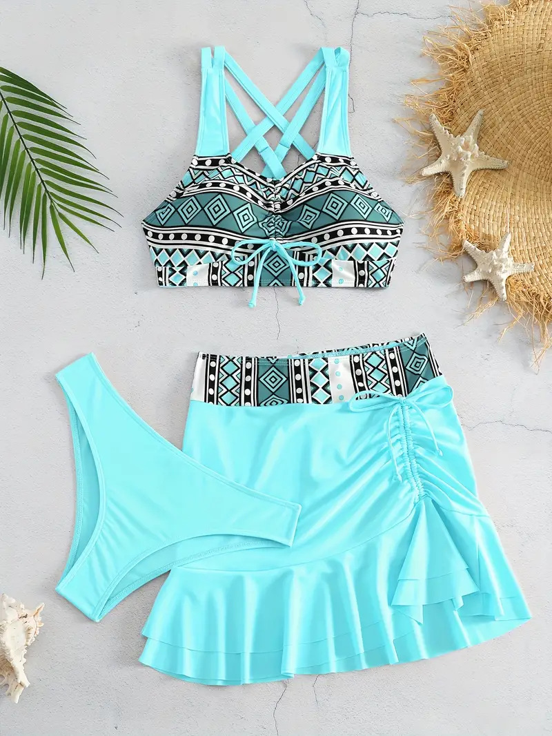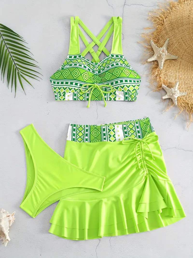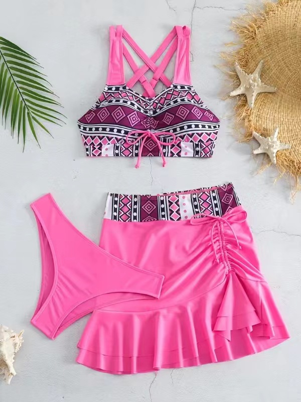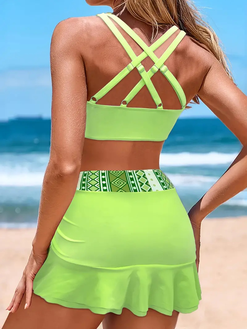 2024-es osztott női háromrészes szoknya stílusú, magas derekú bikini fürdőruha